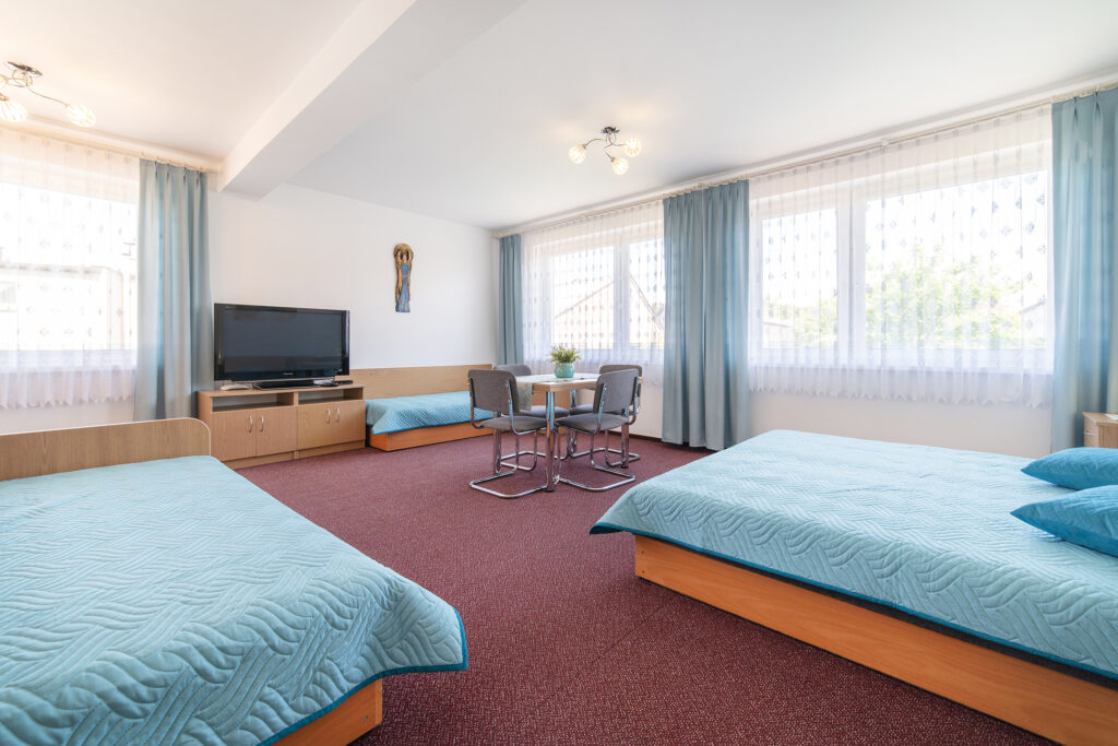 Pokój 4 osobowy I piętroCena za dobę od 240 zł Rezerwacja pokoiPrzyjmujemy rezerwacje tylko telefonicznie 660 451 871 694 582 041
